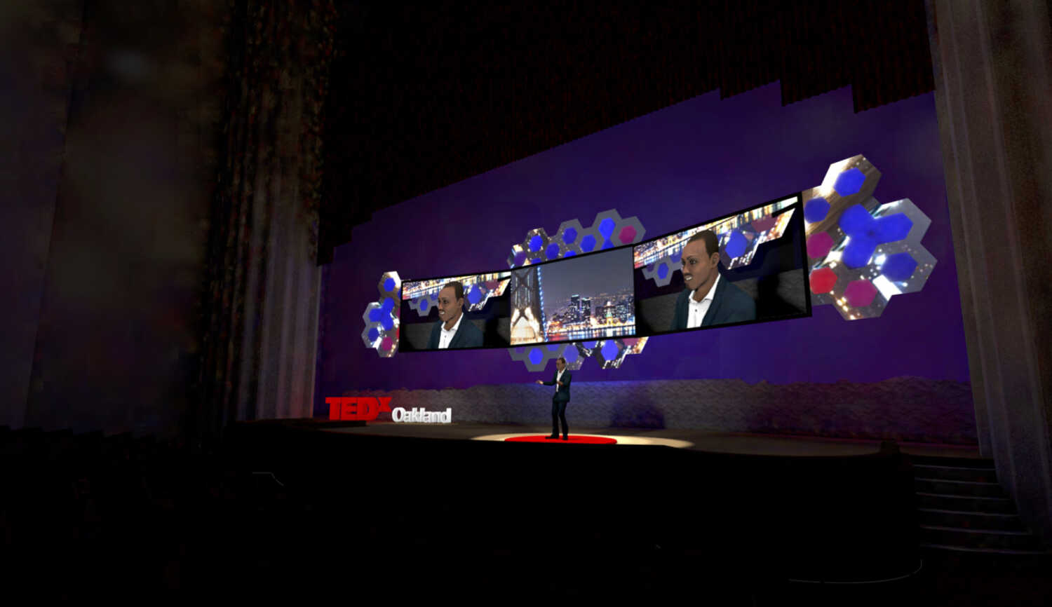We also hunted down the best sources for printed banners, and our creative director personally examined test materials to select the best type for the event. These methodical and detail oriented steps are part of good design, and the remaining part is having an in-depth understanding of real production techniques. While developing a vision for the stage, we can virtually build the stage using common materials and create a shopping list right from the design. This saves the client time and money and makes everyone look like a hero on set.